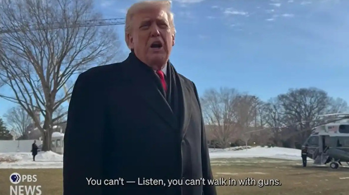有记者问及美国宪法第二修正案,特朗普并未改口,“你不能带着枪支闯入,你不能那样做,但这起事件确实令人痛心。”