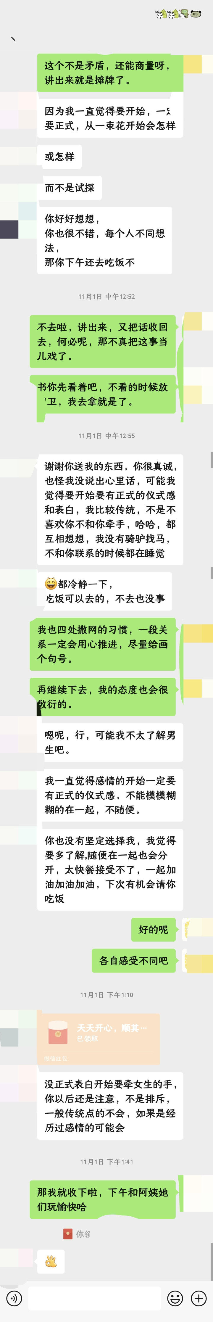 {jz:field.toptypename/}以下是我和这位女孩最后的聊天截图,关键信息已抹去。可以的话,评论区的各位男孩女孩都讲讲自己的见解吗?请不要随意就批评任何一方,这事我觉得只是大家的认知不同。