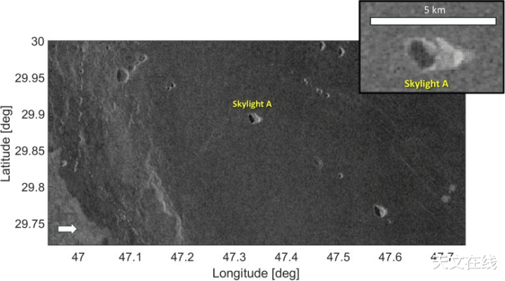 金星尼克斯平地区的天窗揭示了一个地下洞穴,被假定为熔岩管。该特征是通过分析NASA麦哲伦任务搭载的SAR仪器获取的雷达图像识别出来的。着手:特伦托大学RSLab