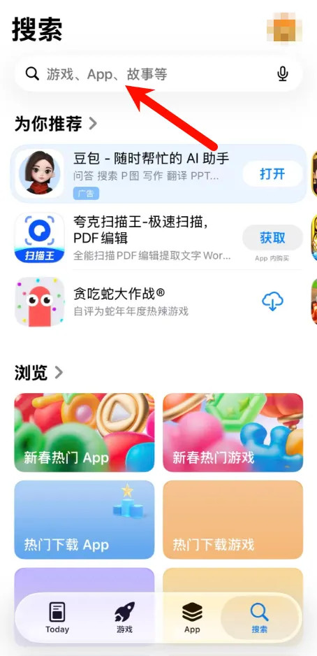 新版 App Store 中,搜索界面再次被交流至界面顶部。