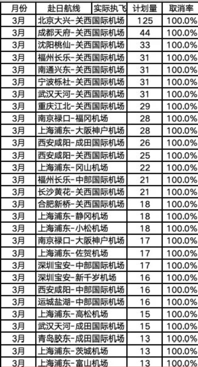 大开手机一看,航班取消的音尘威望汹汹。不是一两班,是成批成批地砍。尤其是日本航路,53条中国大陆往来日本的航路,3月份平直取消了全部航班。