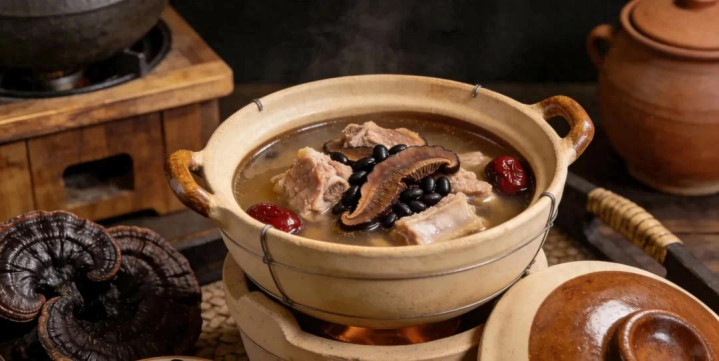 这款汤以灵芝、黑豆、猪骨为核心食材,灵芝补气安神、养心益智,能缓解心神不宁引发的失眠;