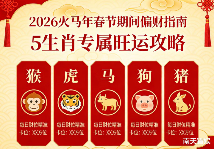 其实,新春求彩头亦然有“门说念”的——逐日财位就像财神爷的“流动值班工位”,找对标的能精确蹭到财运;而属猴、虎、马、狗、猪这5个生肖,因与流年火气场高度契合,偏财运更是“自带外挂”。这篇攻略和会命理逻辑与实用手段,为这5大旺运生肖量身定制了春节蹭财指南,好懂又好用,助你直爽拿捏新年好彩头!
