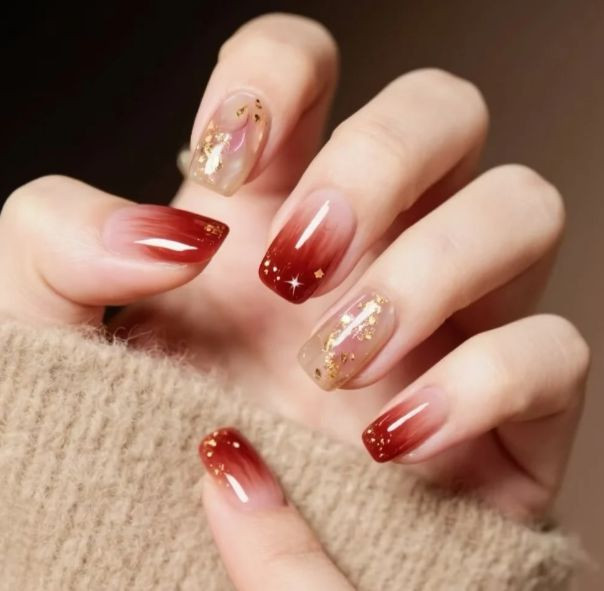至于材质,本年不错试试哑光顶油。光面甲油虽然透亮,但看深化容易有塑料感。哑光质料把后光收进去,颜料千里下来,手指显得修长干净。尤其合乎短甲型,不会把留意力全连合在指甲盖的大小上。若是想保留少量新年氛围,只在无名指或中指作念局部亮面,两种质料在统一色系里对话,比跳色更高档。