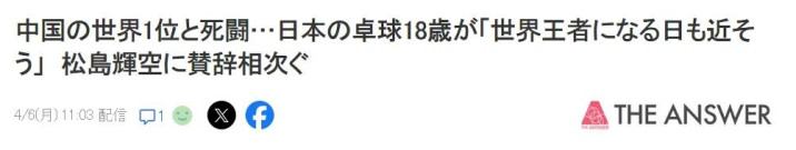 虽未能继3月WTT重庆冠军赛之后再度打败王楚钦,但松岛辉空的弘扬令日本乒乓球球迷盛赞不已。