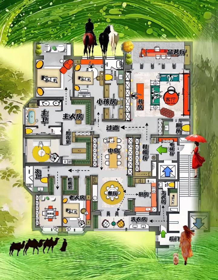 当今大平层更动,最佳的取舍,原户型基础上,选拔最不必钱,三分作念造型,七分重收纳,给八口东说念主留住生计好印象,擢升品性,不损大宅风度!