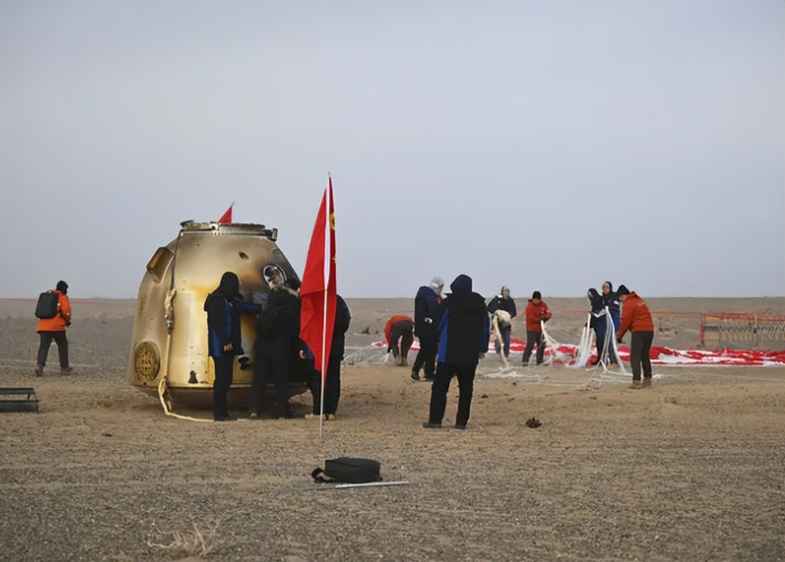 距离大地约1米,四个着陆反推发动机同期点燃,把速率压到每秒2米阁下竣事稳稳着陆。落地检察后果让东说念主松语气,外不雅日常,舱内航天做事与科研物质竣工无损。