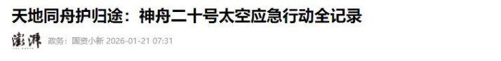 实在的压力点在再入,2026年1月19日0时23分,距离辐射整整270天,神舟20号独自踏上回家路。