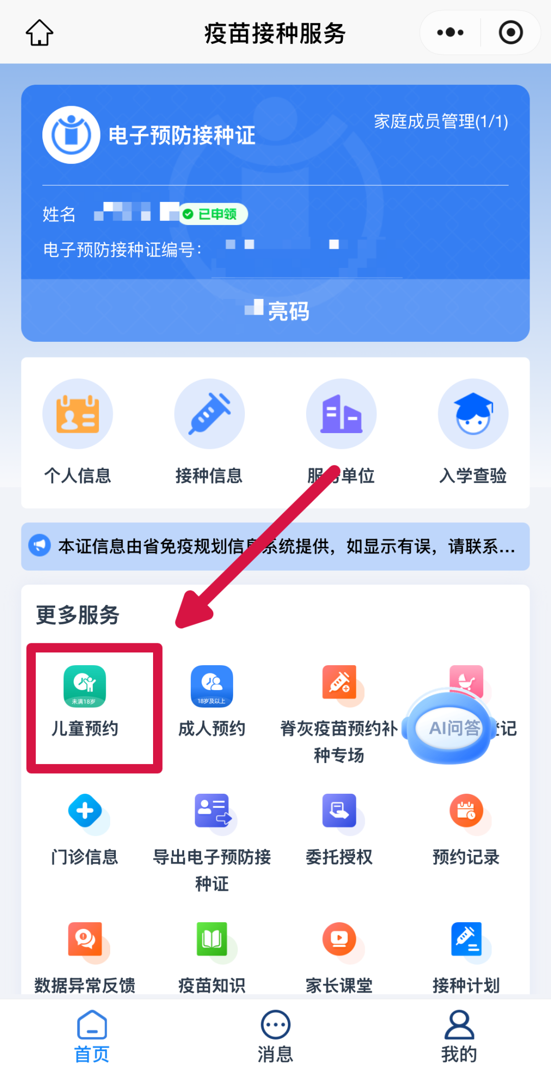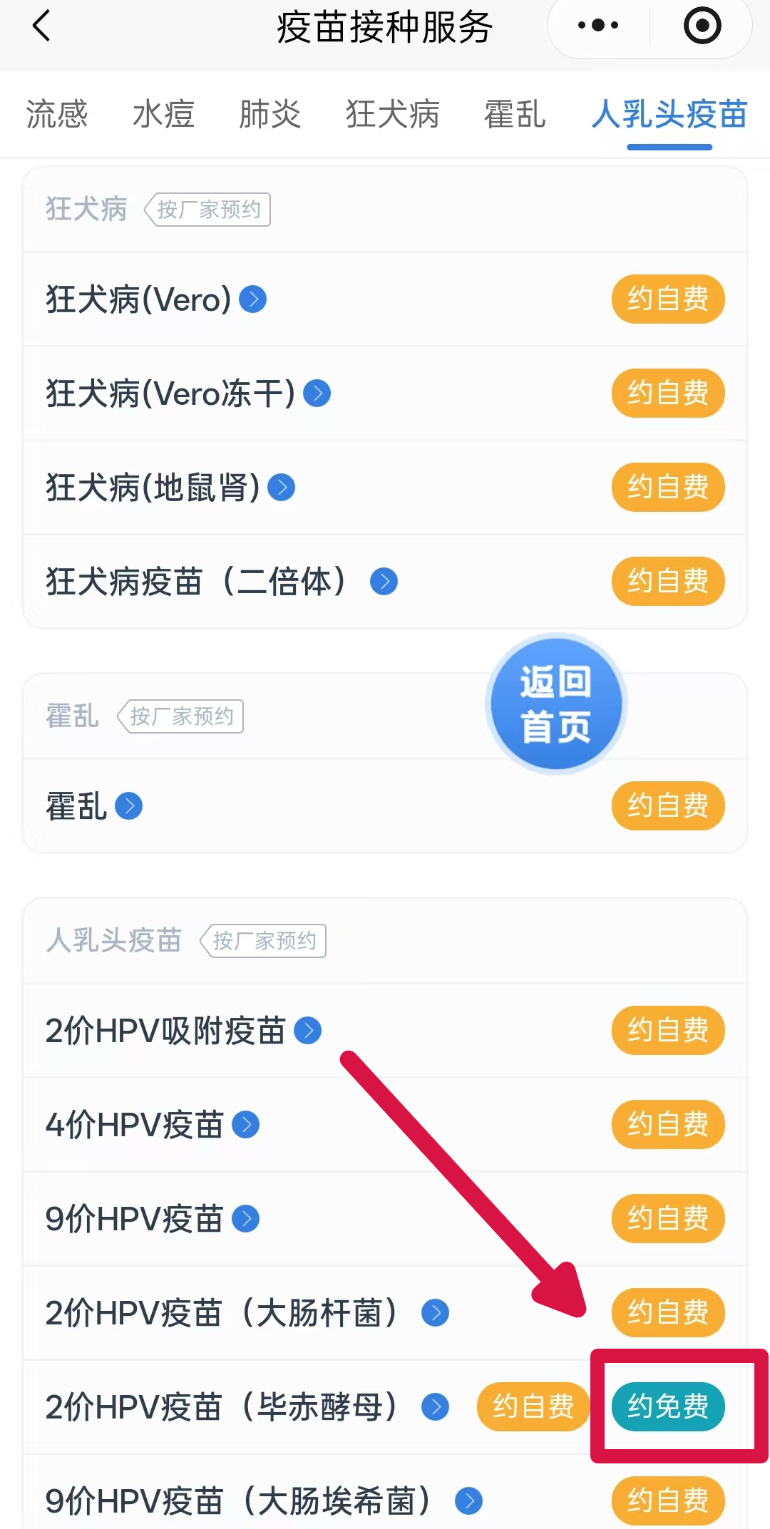 2.点击“儿童预约”—点击“约免费的2价HPV疫苗”。