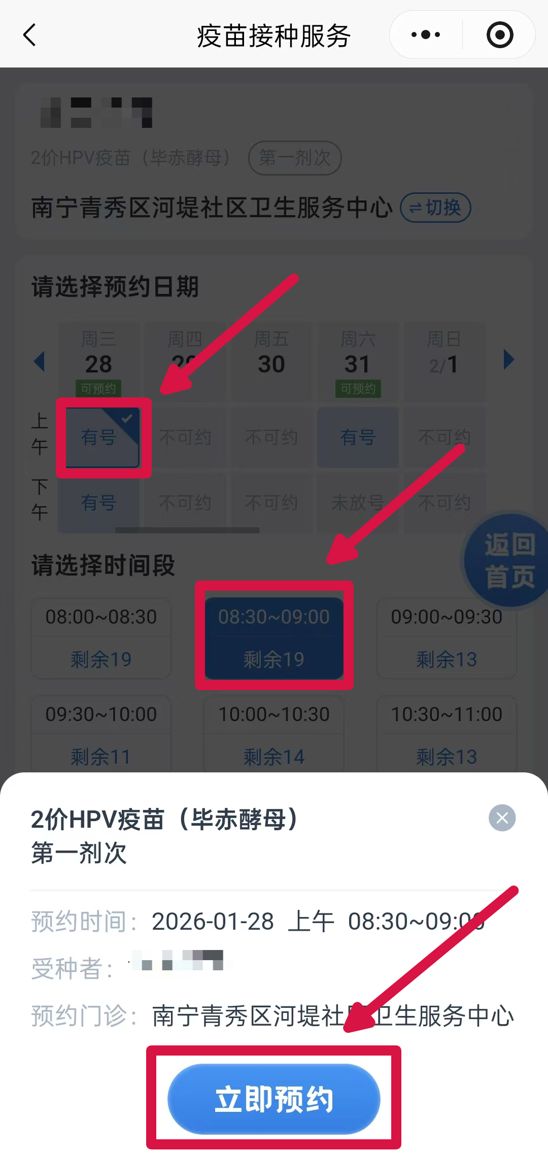 4.选择可预约的日期—选择时间段—点击“立即预约”。