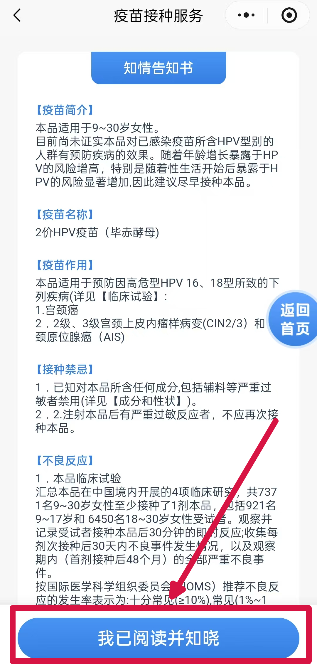 3.阅读“知情告知书”—点击“我已阅读并知晓”—选择可预约的社区卫生服务中心、乡镇卫生院或相关医疗卫生机构的预防接种门诊。