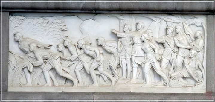 从“虎门销烟”到“金田起义”,象征着我国从近代反侵略的时期迈入农民革命的觉醒阶段。之后的“武昌起义”五四运动“五卅运动”“南昌起义”“抗日游击战”“欢迎解放军”“胜利渡长江”以及“支援前线”,每一幅浮雕都有着独特的觉醒意义和革命象征。