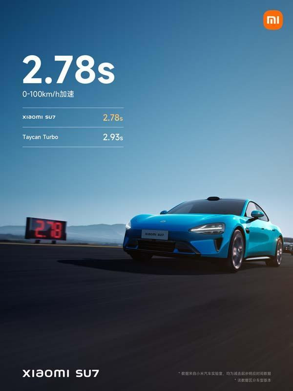 性能方面,小米SU7提供了多个版块可选。顶级的MAX版块搭载了前后双电机系统,最大功率达到673马力,峰值扭矩838牛·米,0-100km/h加快仅需2.78秒,置身超跑俱乐部。
