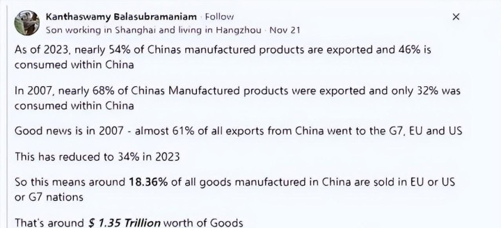 这个问题背后,藏着不少东说念主对全球买卖步地的旧有领路,似乎默许中国的经济增长,豪阔绑着对好意思出口这一条线。