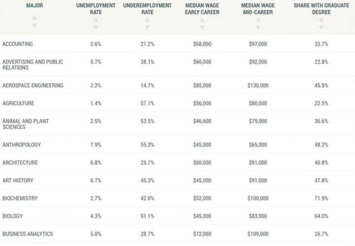 具体来看,东谈主类学专科不仅休闲率高达7.9%,办事不及率也达到了55.3%,起薪中位数仅为45000好意思元。而缠绵机工程专科天然休闲率为7.8%,但起薪却高达90000好意思元;缠绵机科学专科休闲率为7.0%,起薪也有87000好意思元。