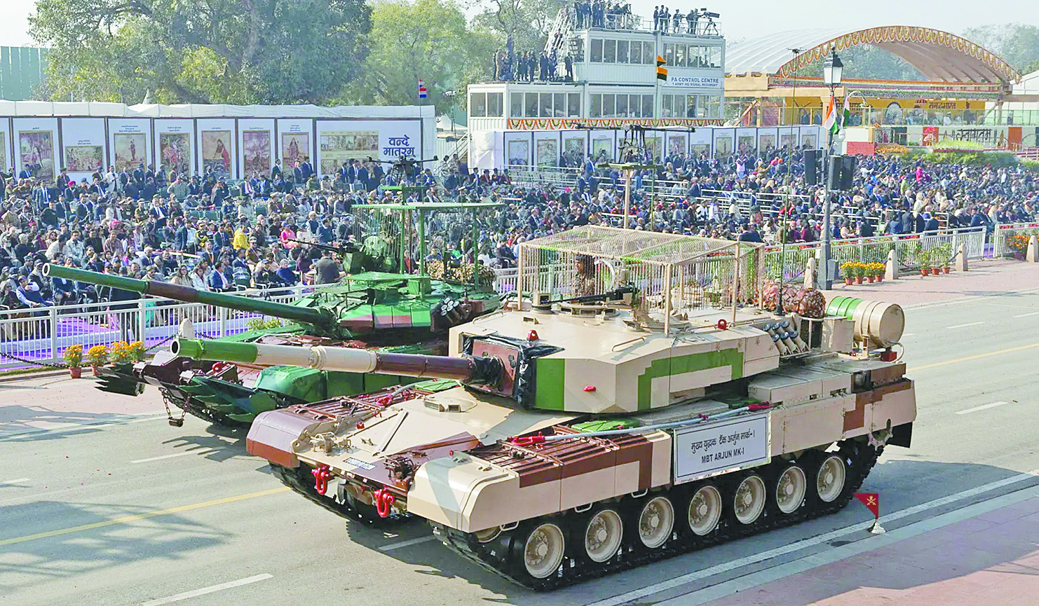 除了LR-AShM导弹之外,印度在“共和国日”阅兵式上还重点展示了其他多种国产装备。印度报业托拉斯26日以《印度在“共和国日”阅兵式上全面展示军事实力》为题报道称,印度在此次阅兵式上展示了导弹、新组建的部队、精锐方队以及各种国产武器系统,反映了印度不断增强的军事能力和国防制造方面的自力更生能力。印度国产“阿琼”MK1主战坦克与俄制T-90主战坦克并肩行驶,它们的炮塔顶部都“与时俱进”地安装了栅栏装甲用于防备无人机袭击。同时公开亮相的还包括国产“北极星”轻型直升机和“鲁德拉”武装直升机,它们具备在高原地带作战的能力,被印军视为空地协同作战的关键装备。