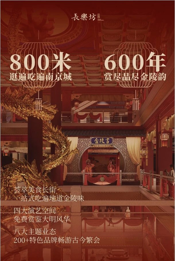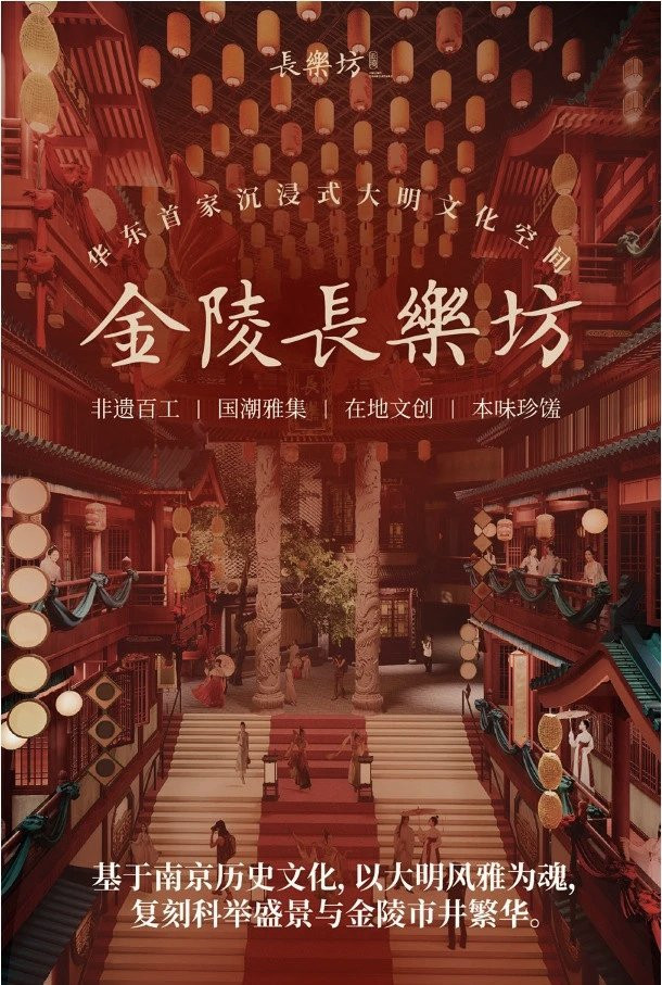 作为老商超更新改造的金陵长乐坊,位于老城南核心地带,毗邻夫子庙与老门东,将打造华东地区首家沉浸式大明文化空间。