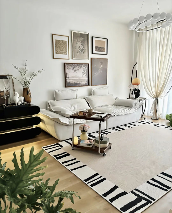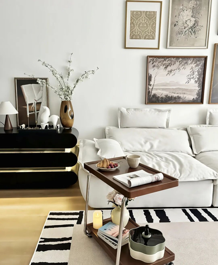 当先,咱们不错探究在沙发的一侧或两侧摒弃一些角几,当有来宾来访时,这些角几就能赶快化身为临时茶几,既方便又实用。