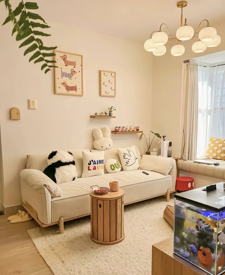选一个体积迷你的小茶几,不仅不错当茶几用,还能化身为“多功能小桌子”或者“操作台”。