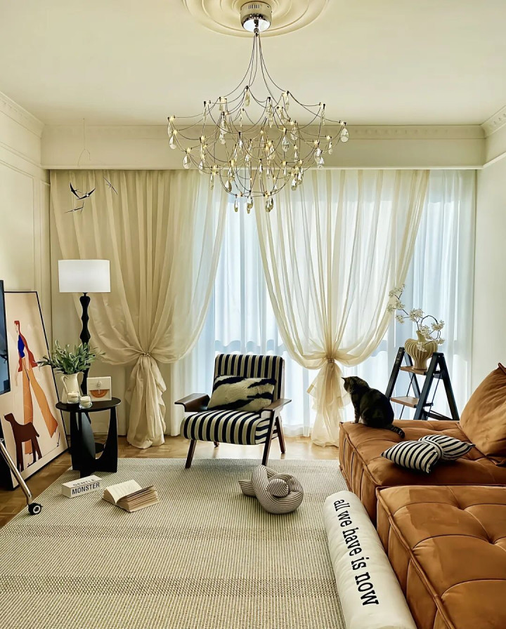 而关于那些豪华大气的客厅来说,去掉茶几更是让扫数这个词空间顷刻间“无边上”,显得亮堂又宽敞。