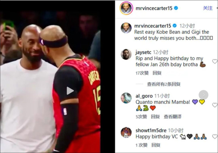 国际篮联(FIBA)、湖人官方及、艾费森、文斯·卡特(在其49岁生日当天发文)均通过社媒表达缅怀。